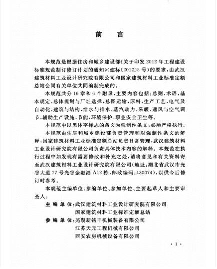 國標-加氣混凝土工廠設計規(guī)范主編單位頁