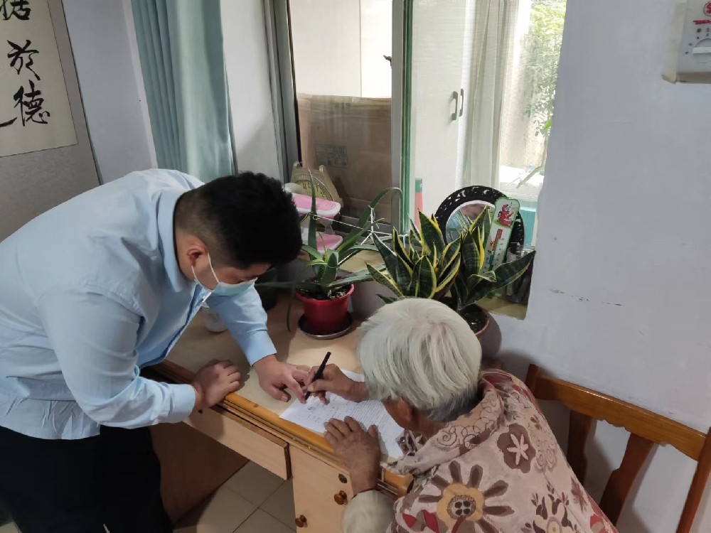 在服務過程中,工作人員與老人家熱情交流,耐心解答,進行詢問、記錄后,指導老人填寫好申請表,簽字確認并蓋上手印,順利辦理過戶手續。工作人員貼心、耐心、細心、專業的服務得到了老人和家屬的一致稱贊。