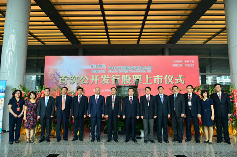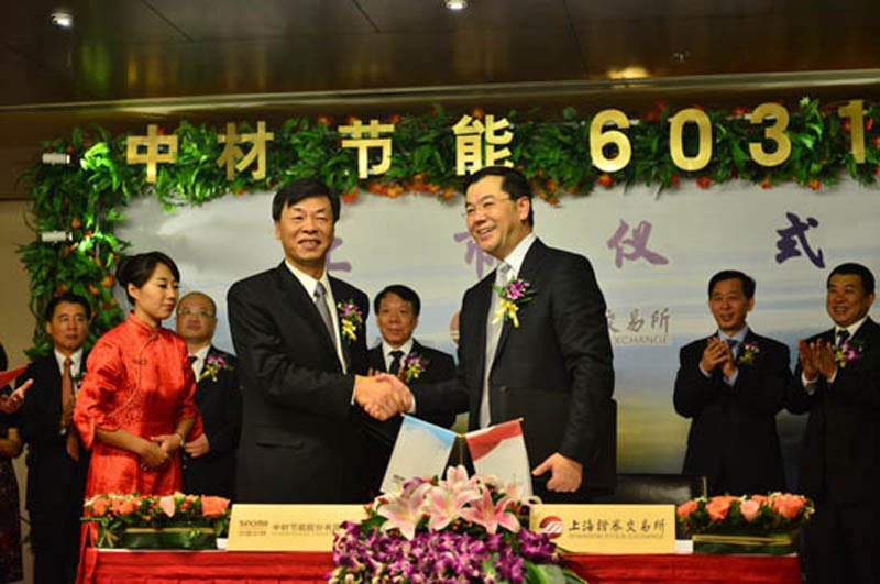 掛牌儀式上,中材節(jié)能董事長(zhǎng)張奇與上交所副總經(jīng)理劉世安簽訂了《上市協(xié)議書(shū)》。中材集團(tuán)董事長(zhǎng)劉志江與天津市政府副秘書(shū)長(zhǎng)袁樹(shù)謙共同敲響了上市銅鑼。