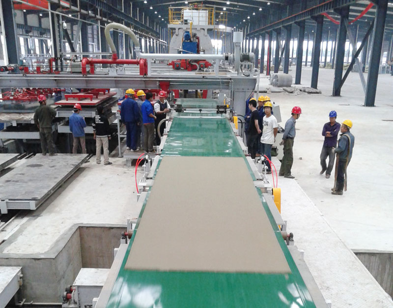 終于,在項(xiàng)目所有人的努力奮戰(zhàn)下,于2014年9月15日11點(diǎn)18分,亳州海創(chuàng)項(xiàng)目成功抄取生產(chǎn)出第一張纖維水泥板。