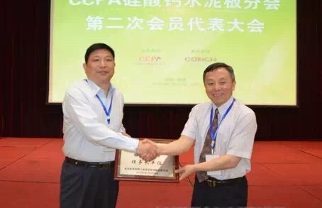 徐永模會長為第二屆硅鈣鈣水泥板分會理事長單位——武漢建筑材料工業(yè)設(shè)計研究院有限公司授牌