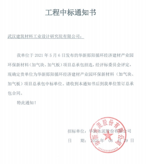 在武漢建材院新一屆領(lǐng)導(dǎo)班子的帶領(lǐng)下,新材事業(yè)部的骨干團(tuán)隊(duì)與華新水泥股份有限公司簽訂了華新鄖陽(yáng)循環(huán)經(jīng)濟(jì)建材產(chǎn)業(yè)園環(huán)保新材料(加氣塊、加氣板)項(xiàng)目EPC總承包建設(shè)項(xiàng)目,該項(xiàng)目是華新水泥涉足環(huán)保新材料(加氣塊、加氣板)領(lǐng)域的第一個(gè)自建項(xiàng)目,也是武漢建材院與華新水泥在繼砂石骨料業(yè)務(wù)多年良好合作基礎(chǔ)上的又一次深化合作。