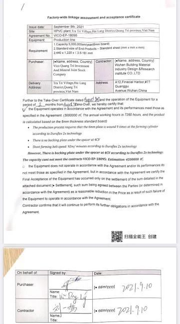越南VICO項(xiàng)目纖維水泥板/硅酸鈣板項(xiàng)目成功通過考核,簽署驗(yàn)收!