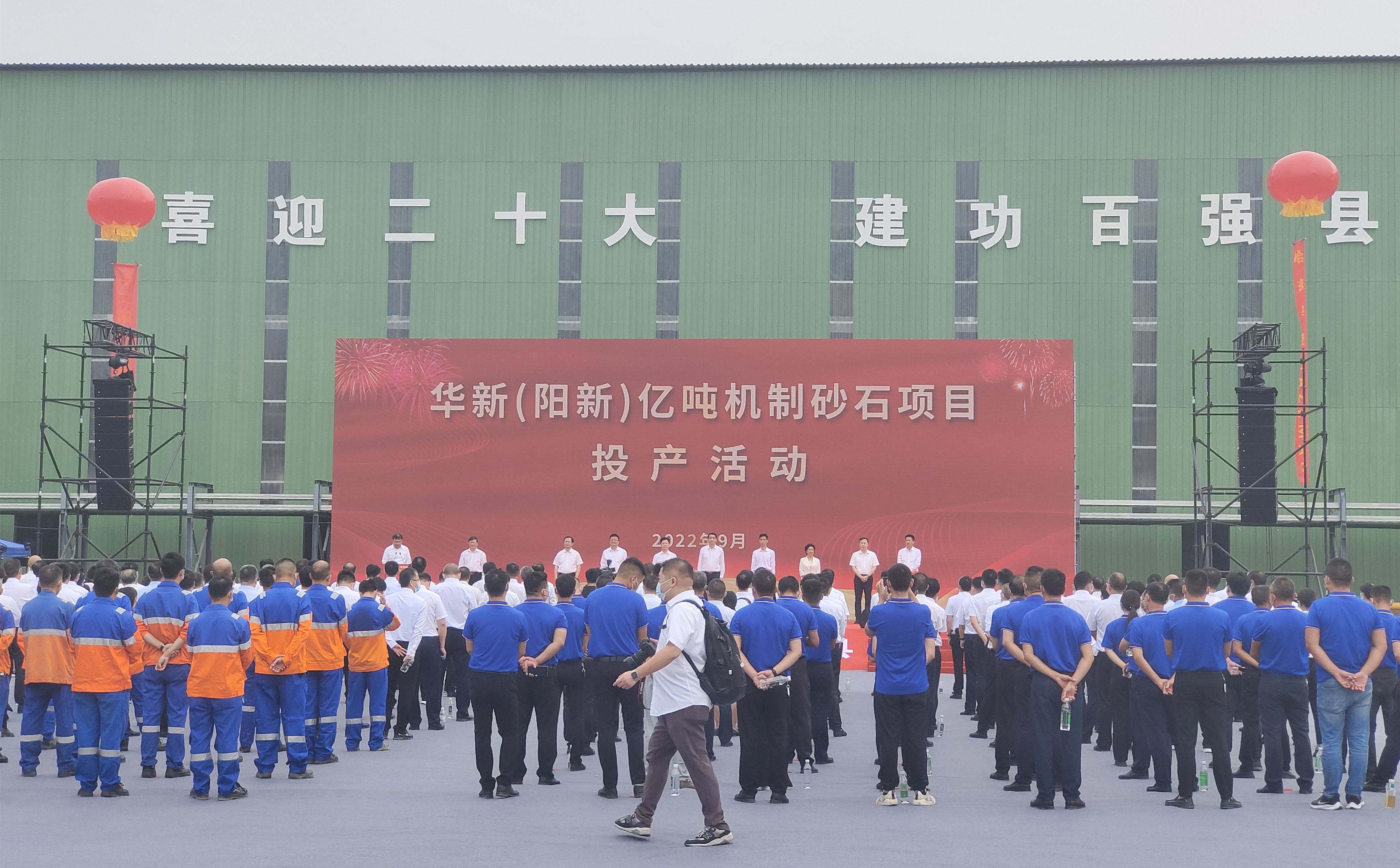 2022年9月26日上午,華新(陽新)億噸機(jī)制砂石項(xiàng)目投產(chǎn)儀式隆重舉行。該項(xiàng)目由武漢建筑材料工業(yè)設(shè)計(jì)研究院有限公司(以下簡稱“武漢建材院”)設(shè)計(jì),項(xiàng)目總投資100億元,于2020年12月28日開工,一期年產(chǎn)5000萬噸產(chǎn)能于2022年9月投產(chǎn),二期年產(chǎn)5000萬噸產(chǎn)能計(jì)劃于2023年底投產(chǎn)。